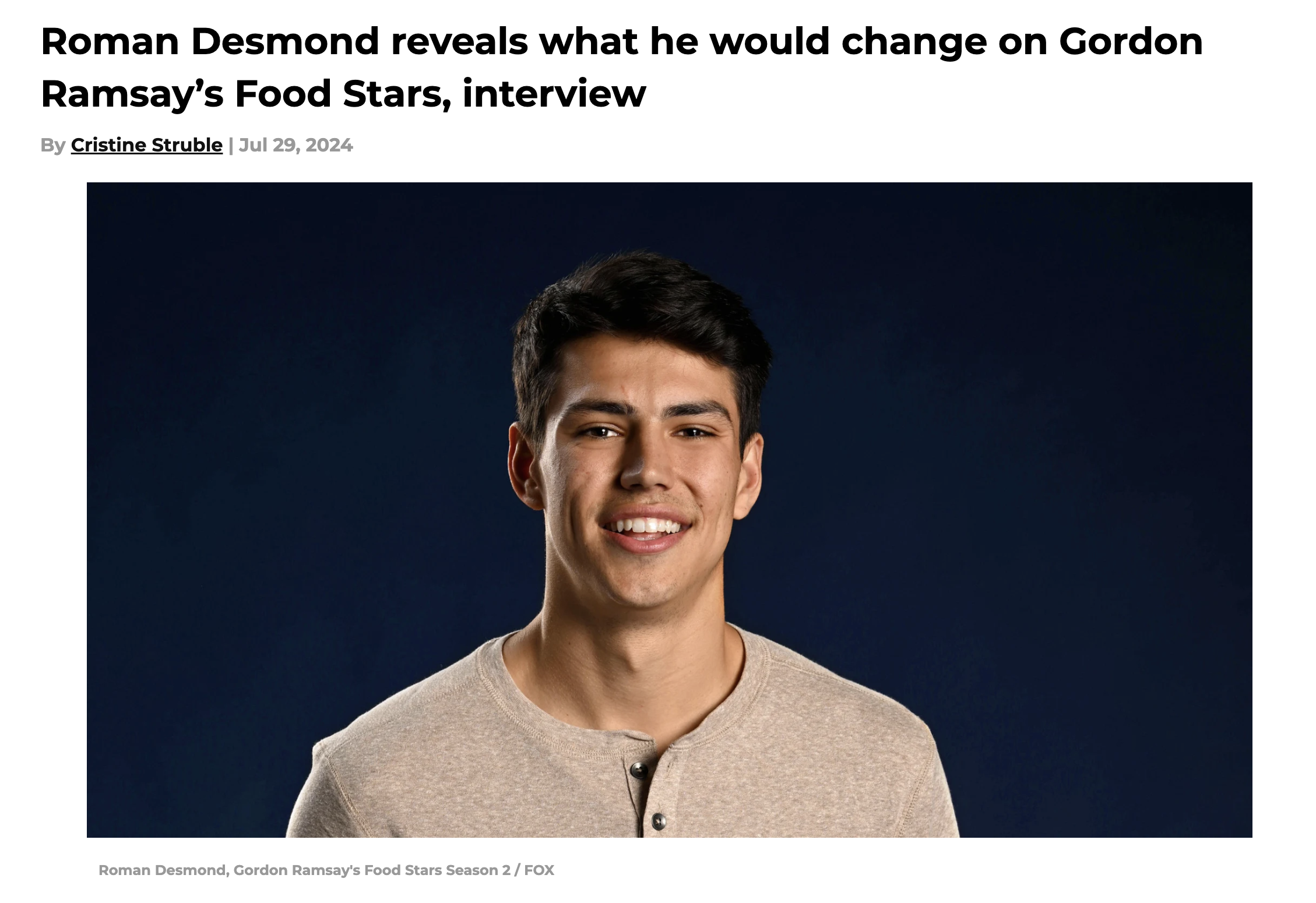 Roman Desmond reveals what he would change on Gordon Ramsay’s Food Stars, interview