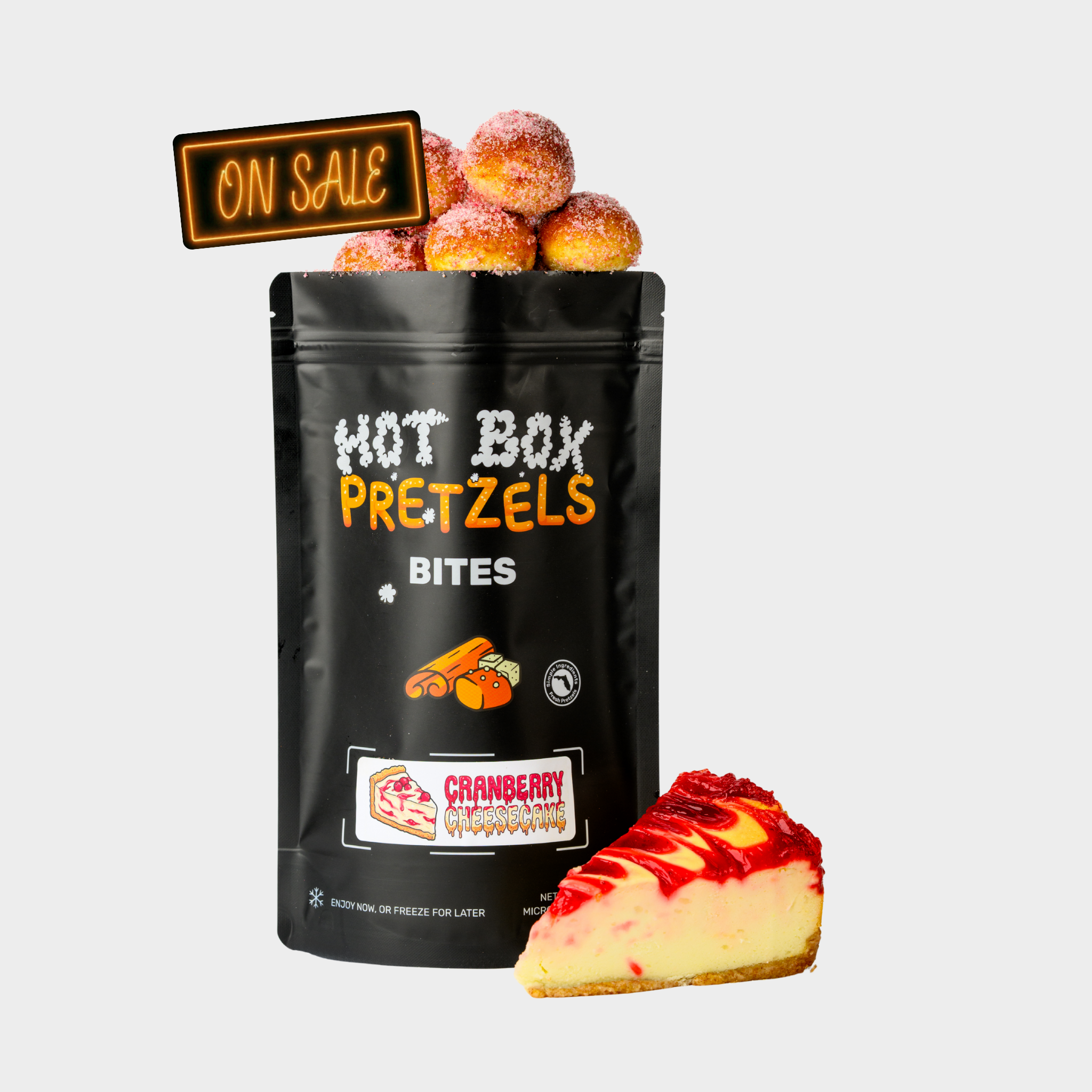 For those who love a simple, buttery, and perfectly sweet snack, the Cranberry Cheesecake is the perfect choice. Each bag includes about 14 fluffy, buttery pretzel bites and comes with a Cranberry Cheesecake flavor packet.