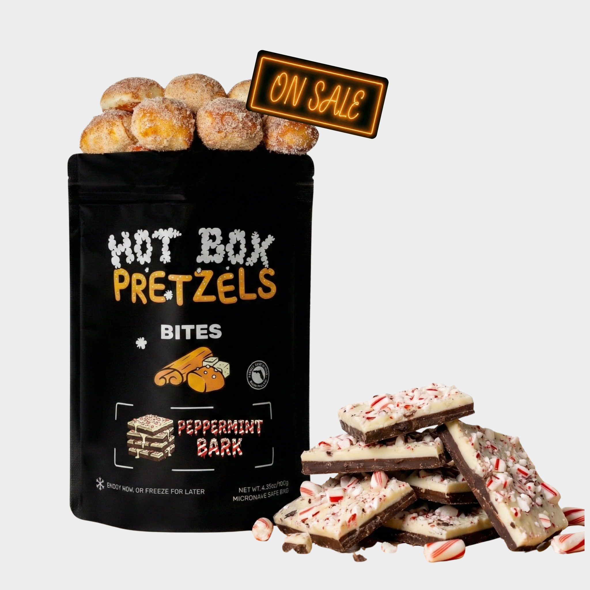 For those who love a simple, buttery, and perfectly sweet snack, the Peppermint Bark is the perfect choice. Each bag includes about 14 fluffy, buttery pretzel bites and comes with a Peppermint Bark flavor packet.